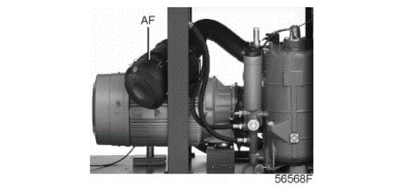 2. 松開空氣過濾器(AF)的搭扣,然后拆下集塵器和空氣過濾器濾芯。 清潔集塵器。 丟棄此過濾器濾芯