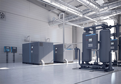 相對噴油螺桿空壓機來說,干式無油螺桿空壓機多了一套級間冷卻裝置(或稱中間冷卻),用于一級壓縮后的氣體冷卻。另外,相對也多了一個冷卻部位——空壓機主機,一般采取夾套內通潤滑油或水進行冷卻。